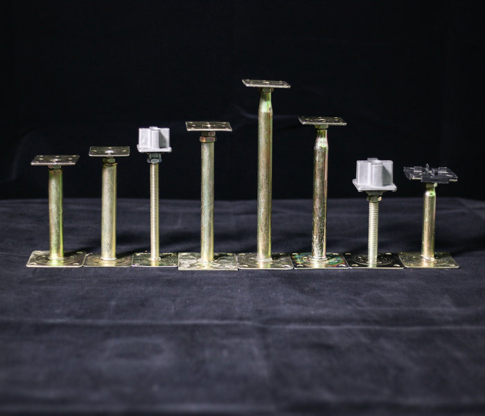 2.标准支架:由上托板、螺杆、锁紧螺母、支撑管和下托板组成,支撑管通常为22×22mm方管、Φ22mm圆管,表面镀锌处置,具备较好的防锈、耐腐蚀功能。